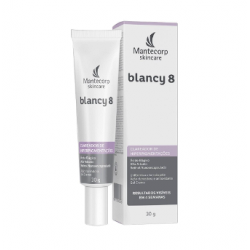 Blancy 8 é um clareador concentrado que reduz visivelmente as manchas do rosto, axilas e virilhas a partir dos 8 ativos presentes em sua fórmula, que juntos, atuam no clareamento das manchas.
