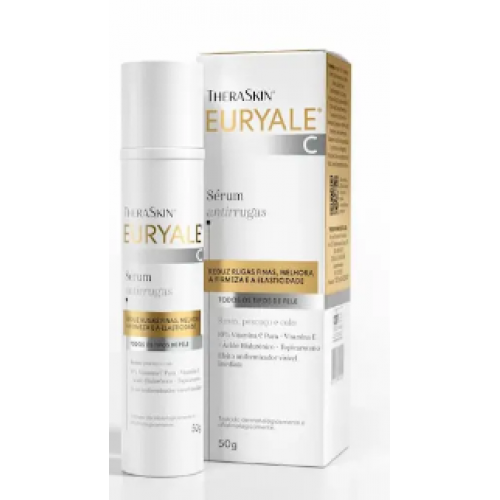 Euryale C é um sérum da TheraSkin que ajuda a melhorar a aparência da pele. Sua fórmula com 10% de vitamina c pura associada a outros ingredientes ativos, age na redução de rugas e linhas finas de expressão, e também na firmeza, luminosidade e uniformidade da pele, além de controlar a oleosidade, proporcionando um efeito antibrilho e toque aveludado.