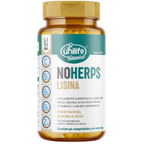 NoHerps Lisina 1000mg Unilife 90 comprimidos Laranja e Acerola