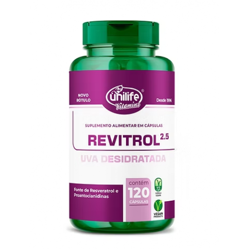 O Revitrol Unilife Vitamins é um suplemento VEGANO, desenvolvido a partir de uva desidratada em pó. Livre de glúten.